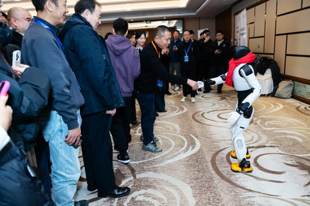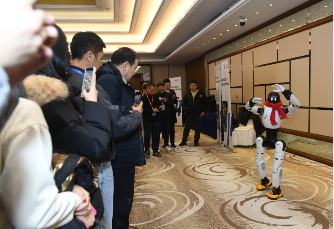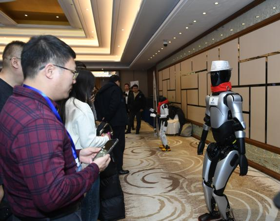 中国新闻技联(成都)数智融媒创新中心研发的睿博机器人与大会代表互动
