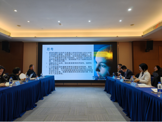 河北经贸大学新闻与文化传播学院副院长田悦芳教授围绕该院新闻传播学专业的发展规划,结合“部校共建”新闻学院的建设成果,重点介绍了该专业应用型定位与“技术+文化传播”特色,阐述了学院在新闻传播教育中推进AIGC技术布局的相关思路。